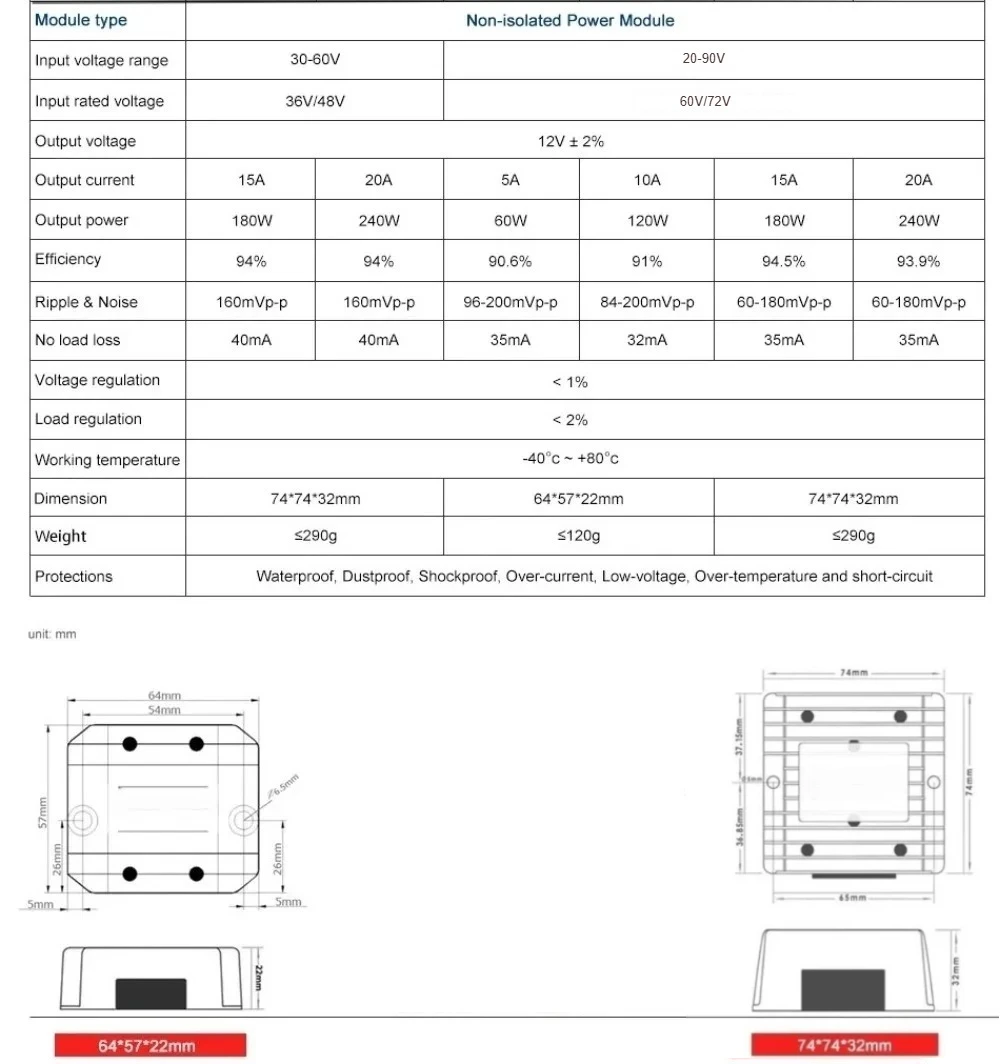 שם המוצר/פריט:ממיר מתח מ-20-90V ל- 12V זרם 10A