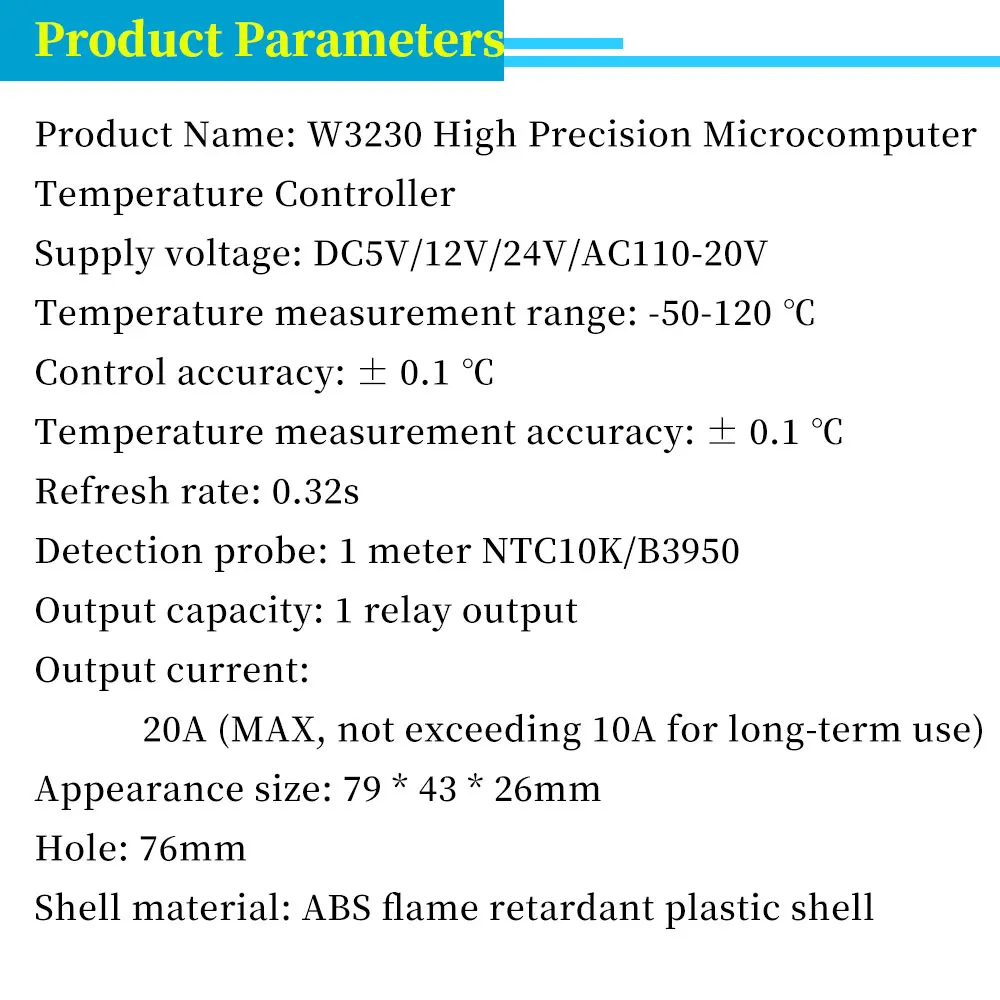 1PC x W3230 AC 110-220V/DC 12V Digital Thermostat Temperature Controller Regulator Heating Cooling Control Thermostat Instruments -55-120 Degree