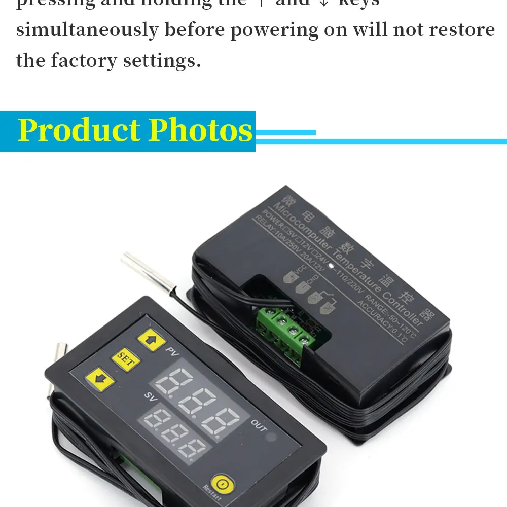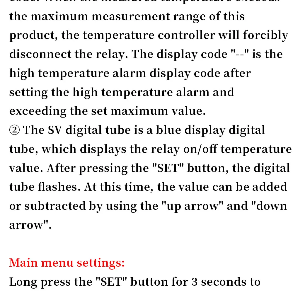 Connect the power supply and equipment to supply power to the controller. At this time,it is displayed as measuring temperature. Press SET once,the display temperature will flash,press +- to set the desired temperature (press +- to quickly raise and lower) After finishing,press SET to confirm the return. At this time,the controller automatically performs relay on/off according to the setting! The output of the thermostat is a 20A relay,which satisfies various high-power loads. When the control circuit is connected,the thermostat can be powered. At this time,the display shows the ambient temperature.